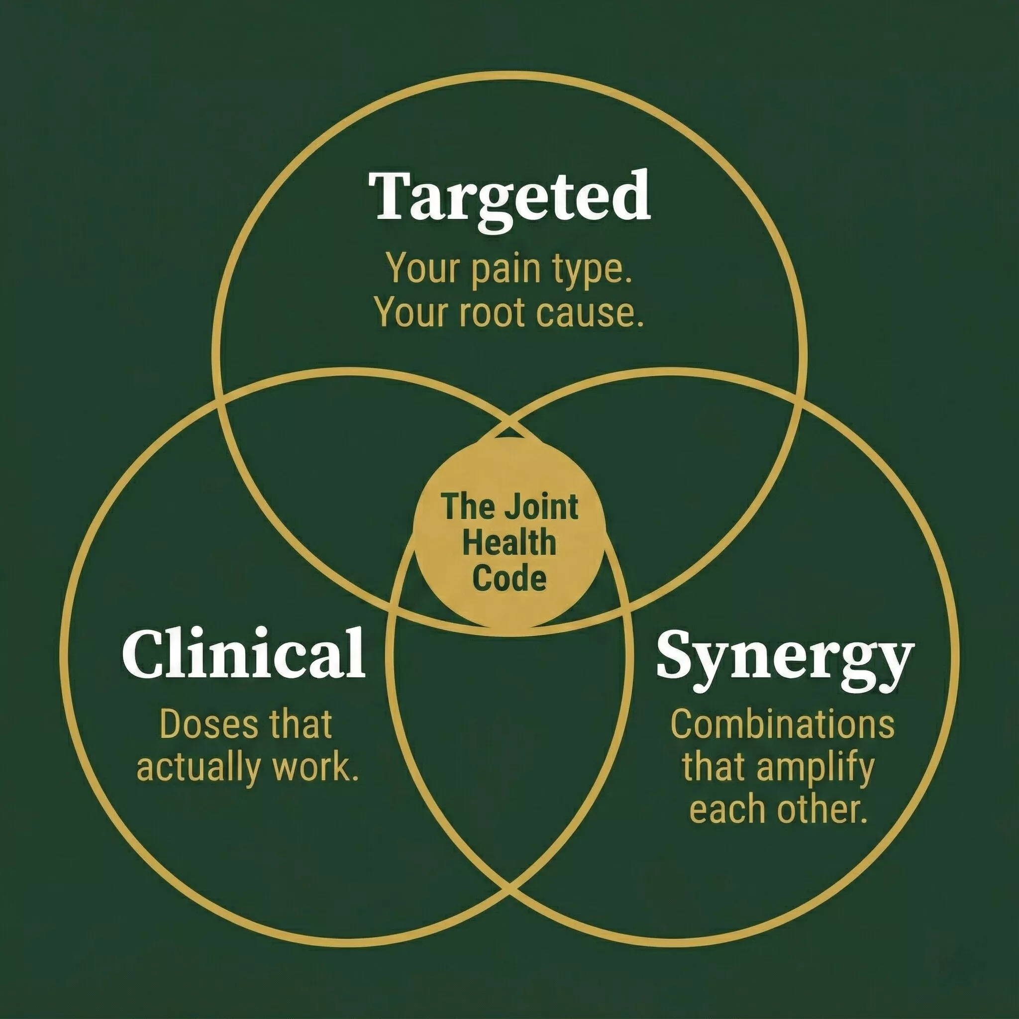 Most natural health resources treat joint pain as one problem. It isn't. The Joint Health Code was built around a single principle: Targeted Clinical Synergy.
